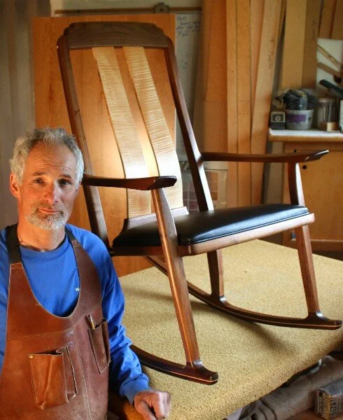 /Alan has been building fine furniture since 1971. This marks his 50th year. He continues to be very passionate about his work; from meeting with his clients, working through the design process and the actual building of the pieces, taking the raw hardwood lumber and creating gorgeous pieces of functional art for his clients. His chairs are some of the most comfortable you will ever have the opportunity to sit in and it is almost impossible to refrain from stroking the polished wood.